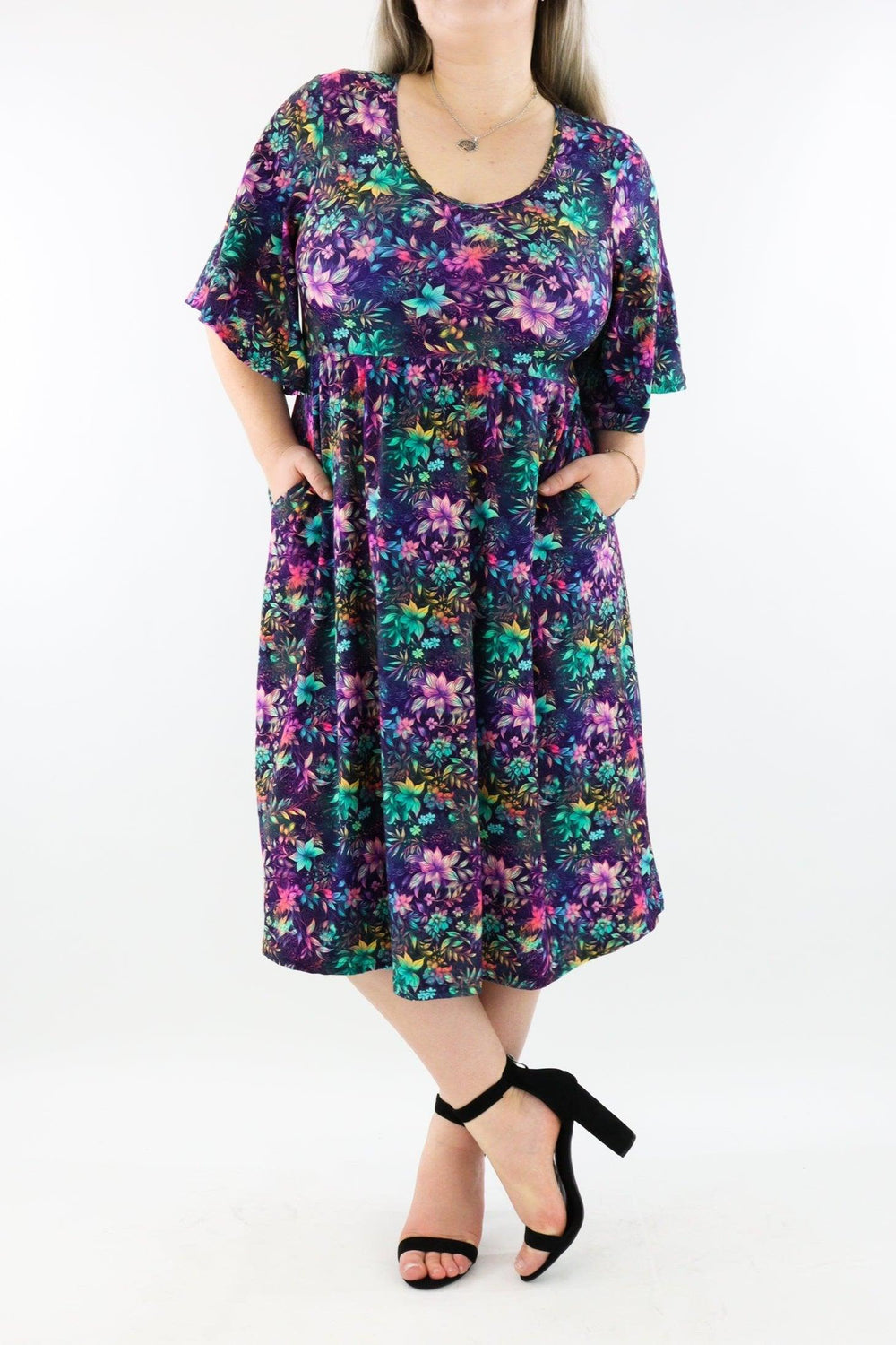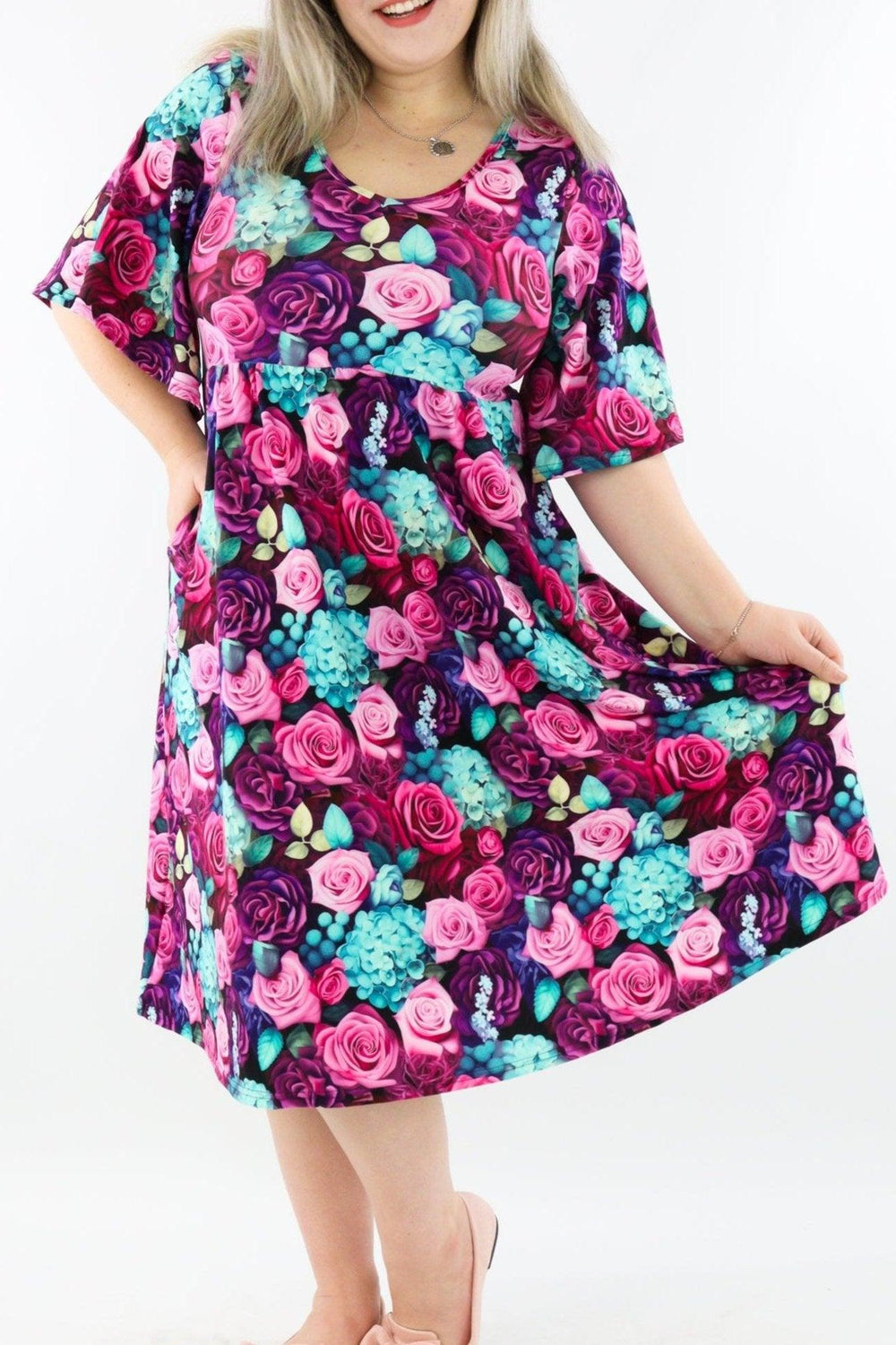 Tutti Frutti Flower - A-Line Dress - Midi Length - Side Pockets - Pawlie