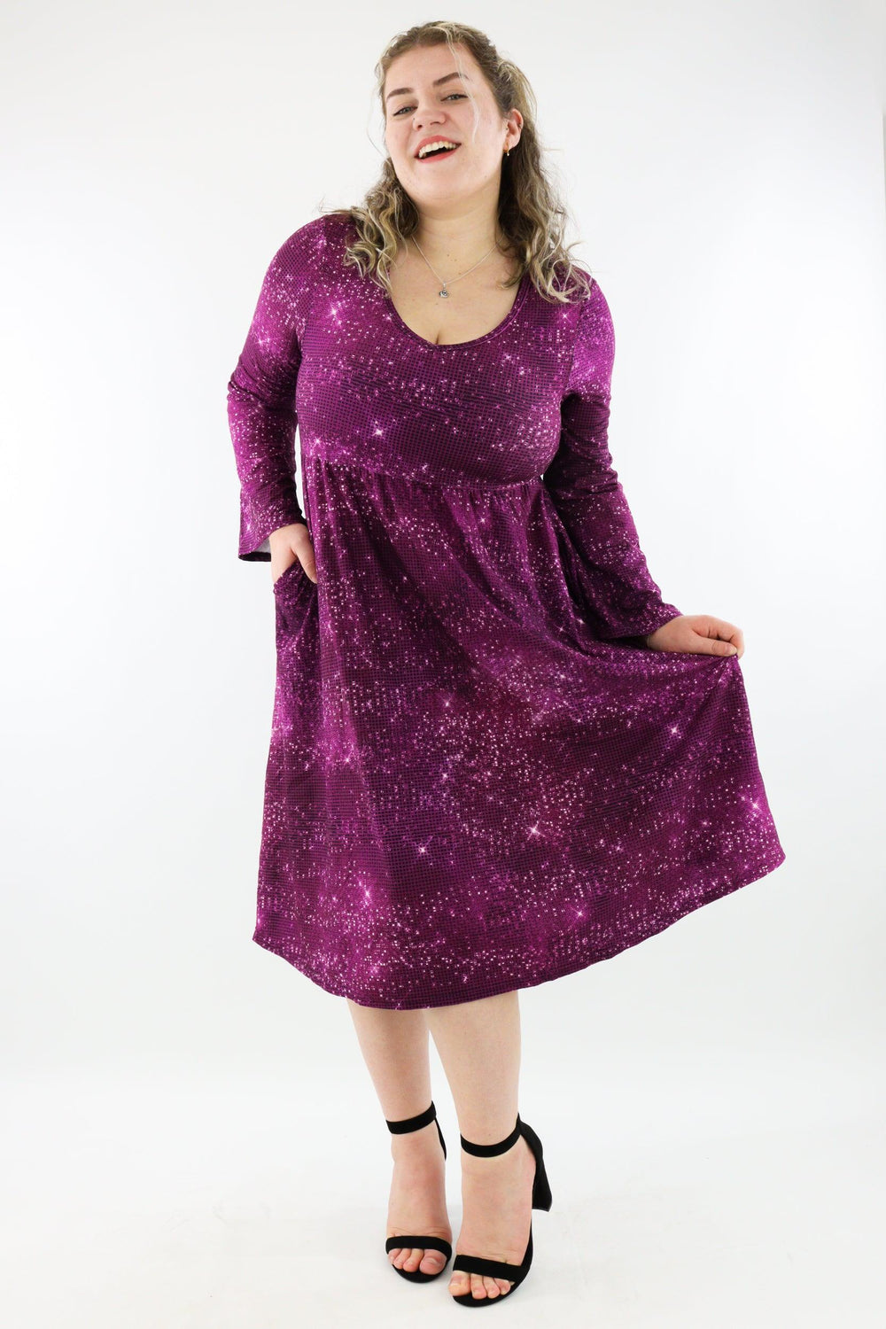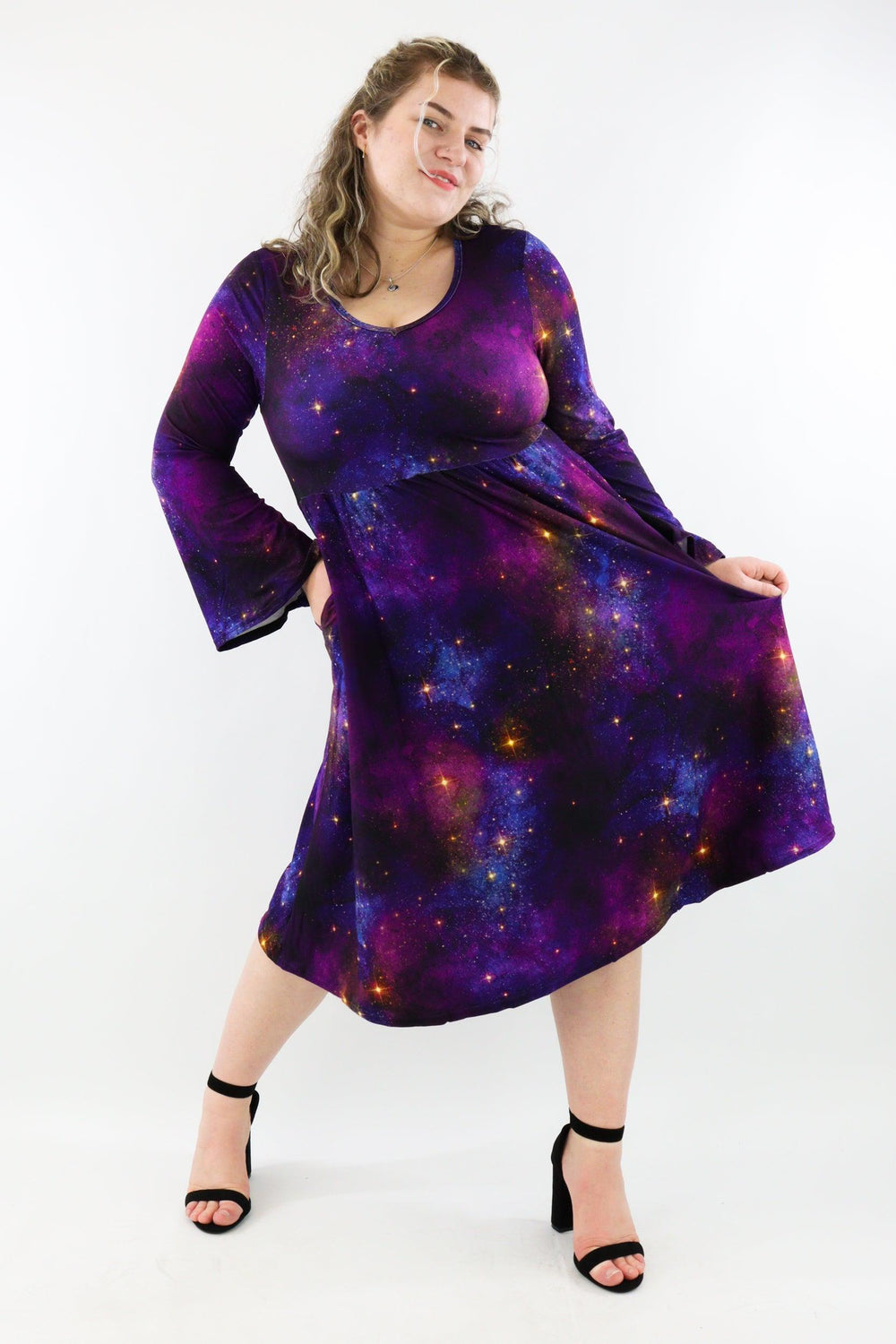 Galaxy Dust - Midi Length Dress - Bell Sleeve - Pockets