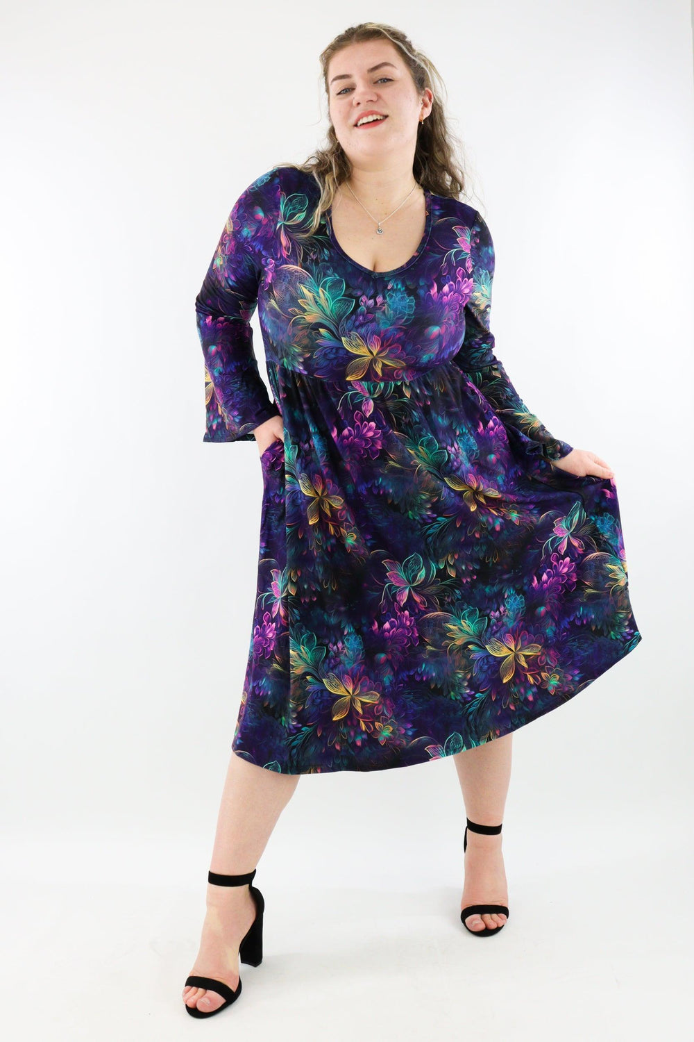 Spectral Garden - Midi Length Dress - Bell Sleeve - Pockets