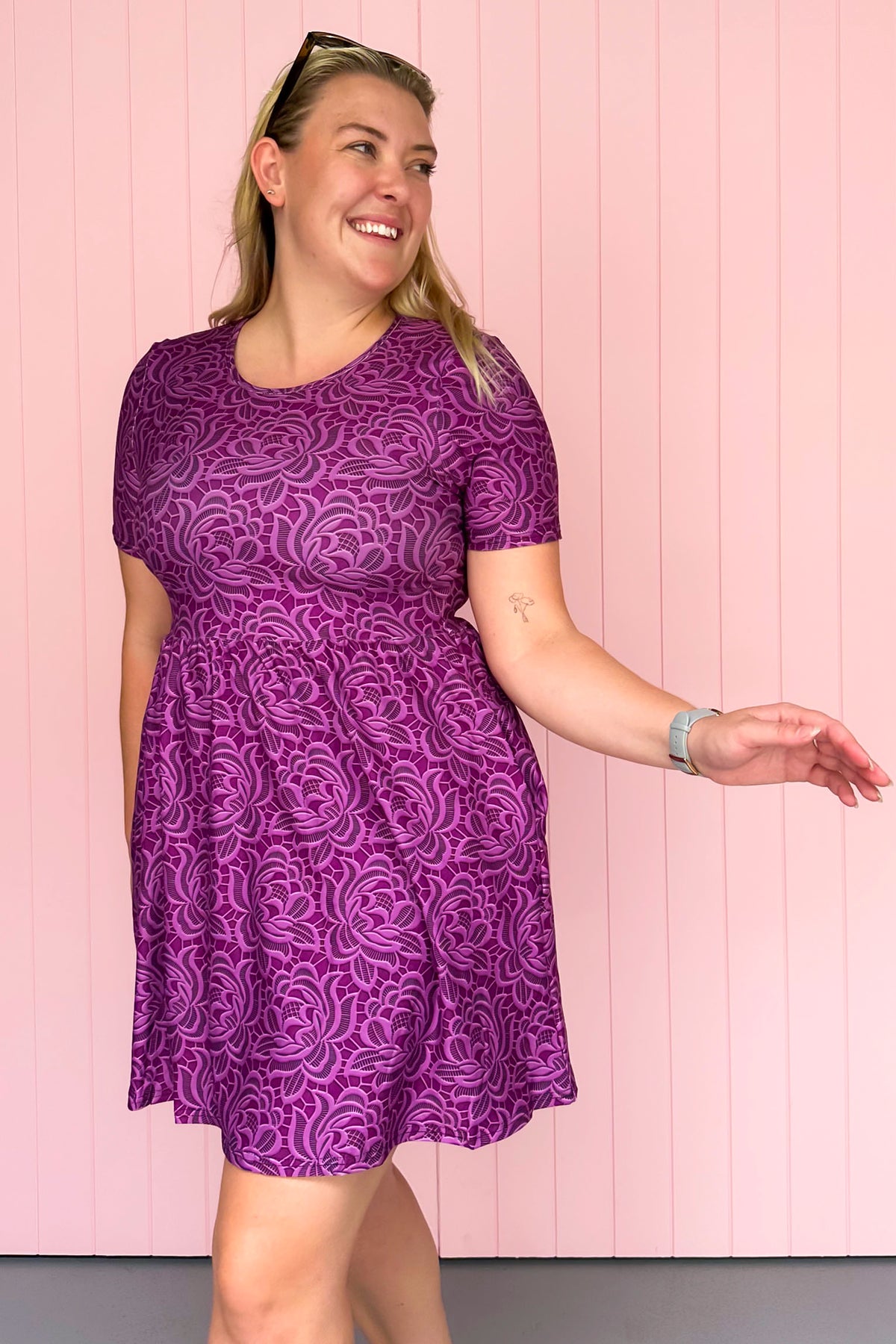 Lacy Plum - Mini Dress - Short Sleeve - Pockets