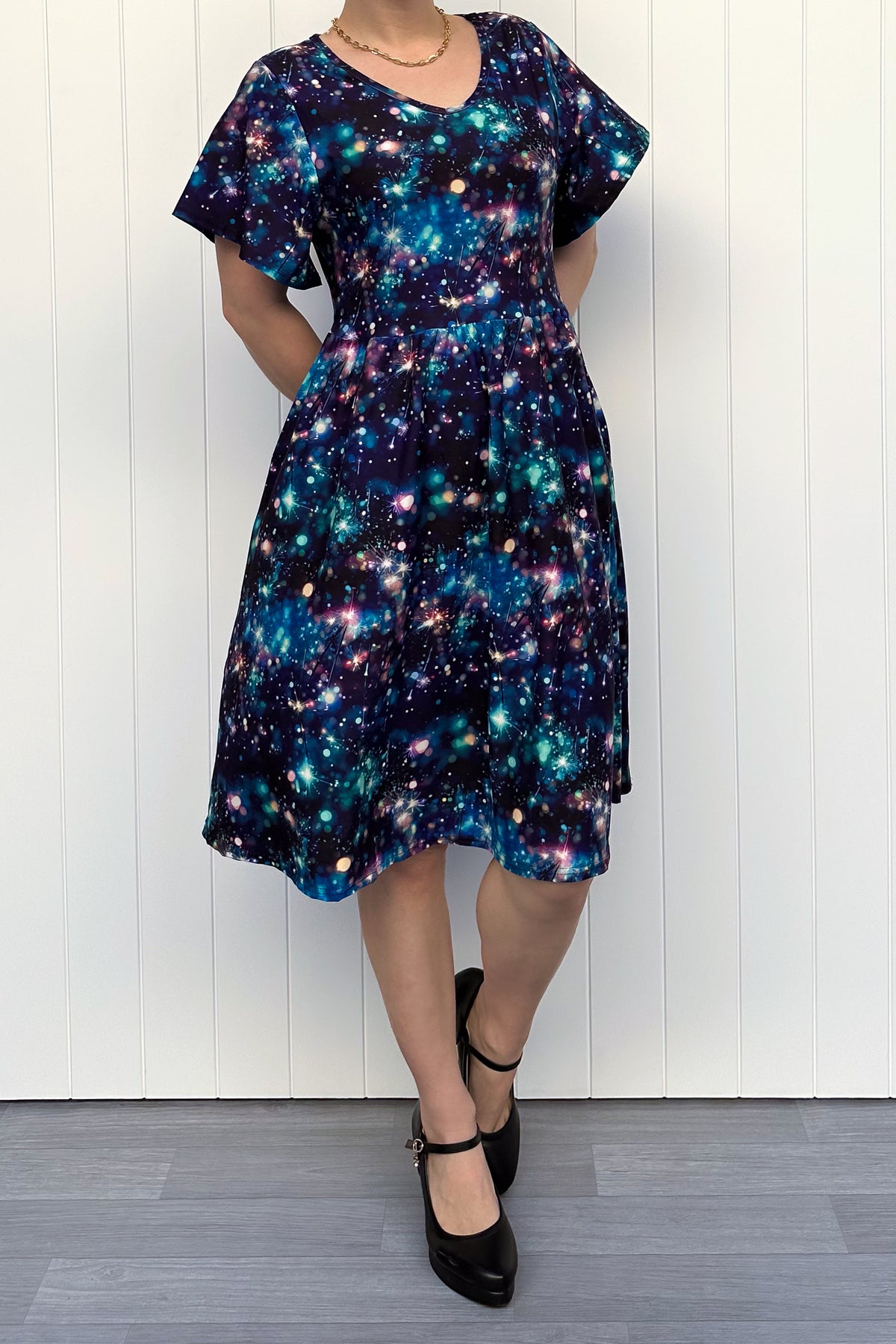 Sparklers - Knee Length Dress - Flutter Sleeve - Pockets