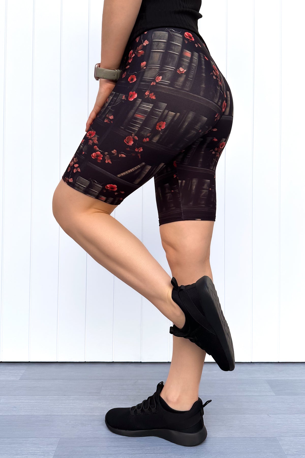 The Book Witch Casual Long Shorts drape your days in midnight bookshelves and climbing crimson florals, casting the kind of spell only book lovers understand. The stretch fabric moves like a second skin, while the high waistband keeps everything snug through every chapter. With a longer-leg cut for confident coverage, these shorts are made for reading nooks, late night adventures or witchy mischief.