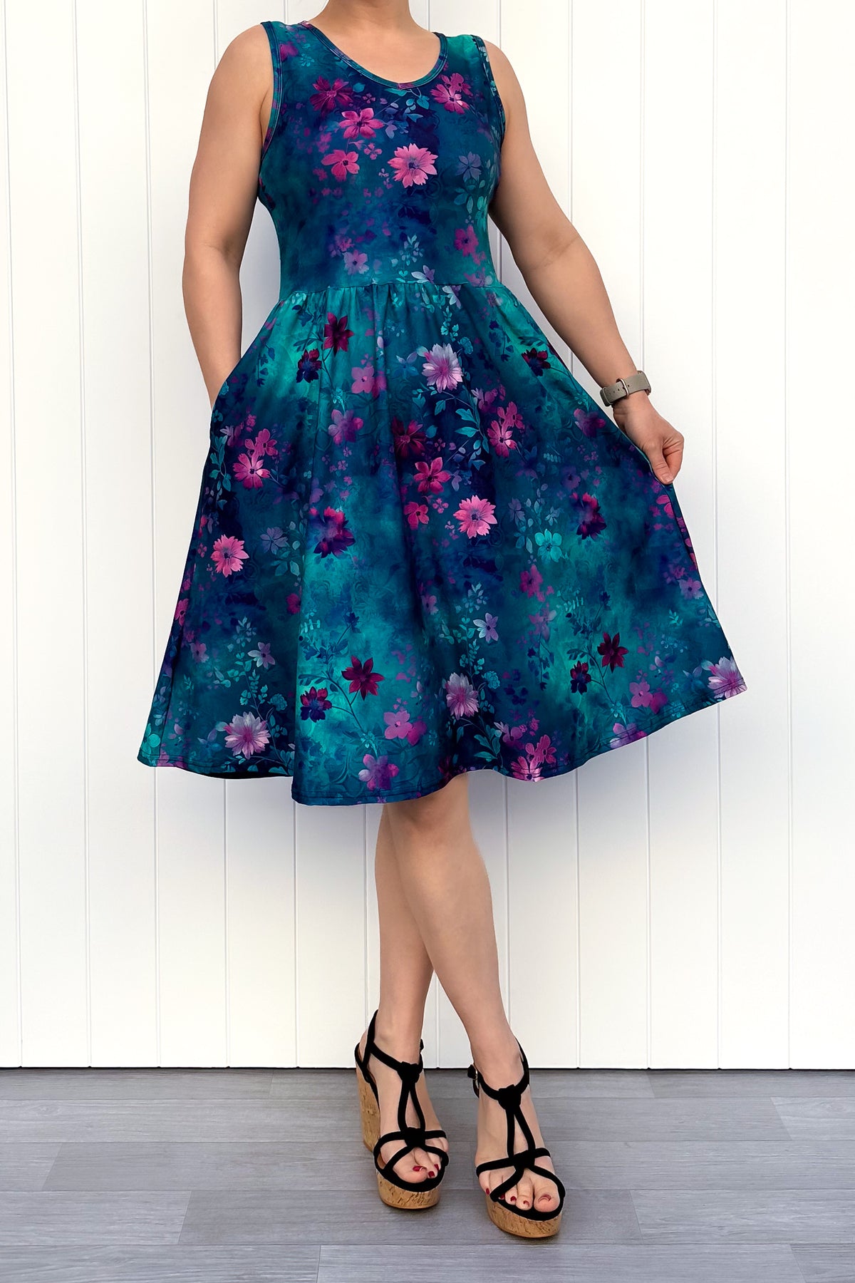 The Ethereal Bloom Sleeveless Knee Length Dress captures soft teal tones, dusky pink petals and gentle purple florals that gives pure daydream. There’s a quiet magic to this dress, elegant without being over-the-top and full of depth without feeling heavy. The soft stretch fabric creates an easy, comfortable fit, the sleeveless cut keeps things cool, and the pockets bring everyday practicality right where you want it.