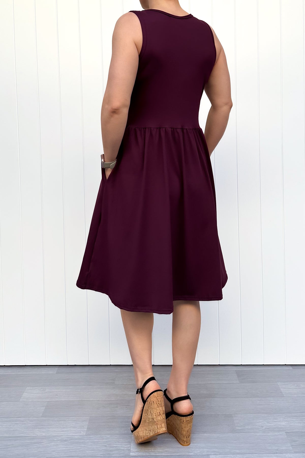 Plum - Sleeveless Knee Length Dress - Side Pockets